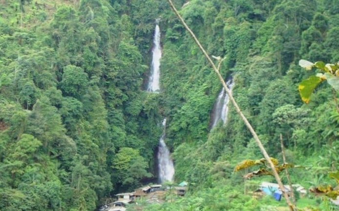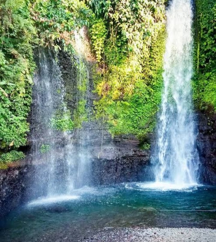Ketinggian dari air terjun kedua ini cukup tersamarkan karena tertutup oleh pepohonan yang rimbun. Untuk kolam penampungannya sendiri lebih dalam dan lebih luas. Anda juga bisa berenang di sekitar sini. Bahkan melompat dari ketinggian tebing pun juga aman. Tapi Anda tetap harus berhati-hati agar tidak cedera.
