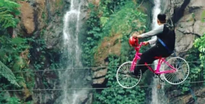 Salah satu yang disebutkan tadi wahana yang paling cocok untuk berpose yaitu sepeda apung, serunya merasakan sensasi diatas sepeda yang terapung dikelilingi mepandangan hijau dan asri bahkan ditiup angin dari air curug menjadikan keseruan tersendiri didalamnya.