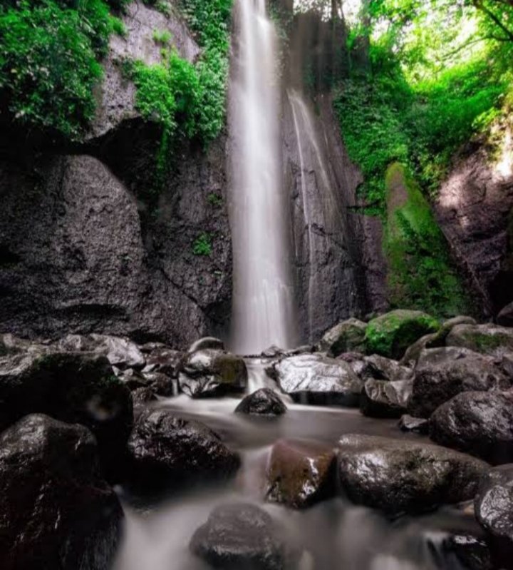 Air terjun pertama yang kamu lihat jaraknya paling dekat dengan pintu masuk. Air terjun pertama ini memiliki dinding tebing berwarna kehitaman dan didominasi oleh bebatuan.